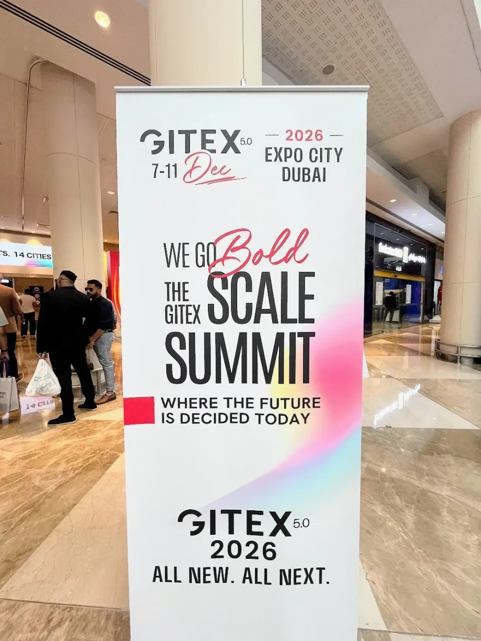 「GITEX 2026」を告知するプロモーション看板(写真提供=原田篤)