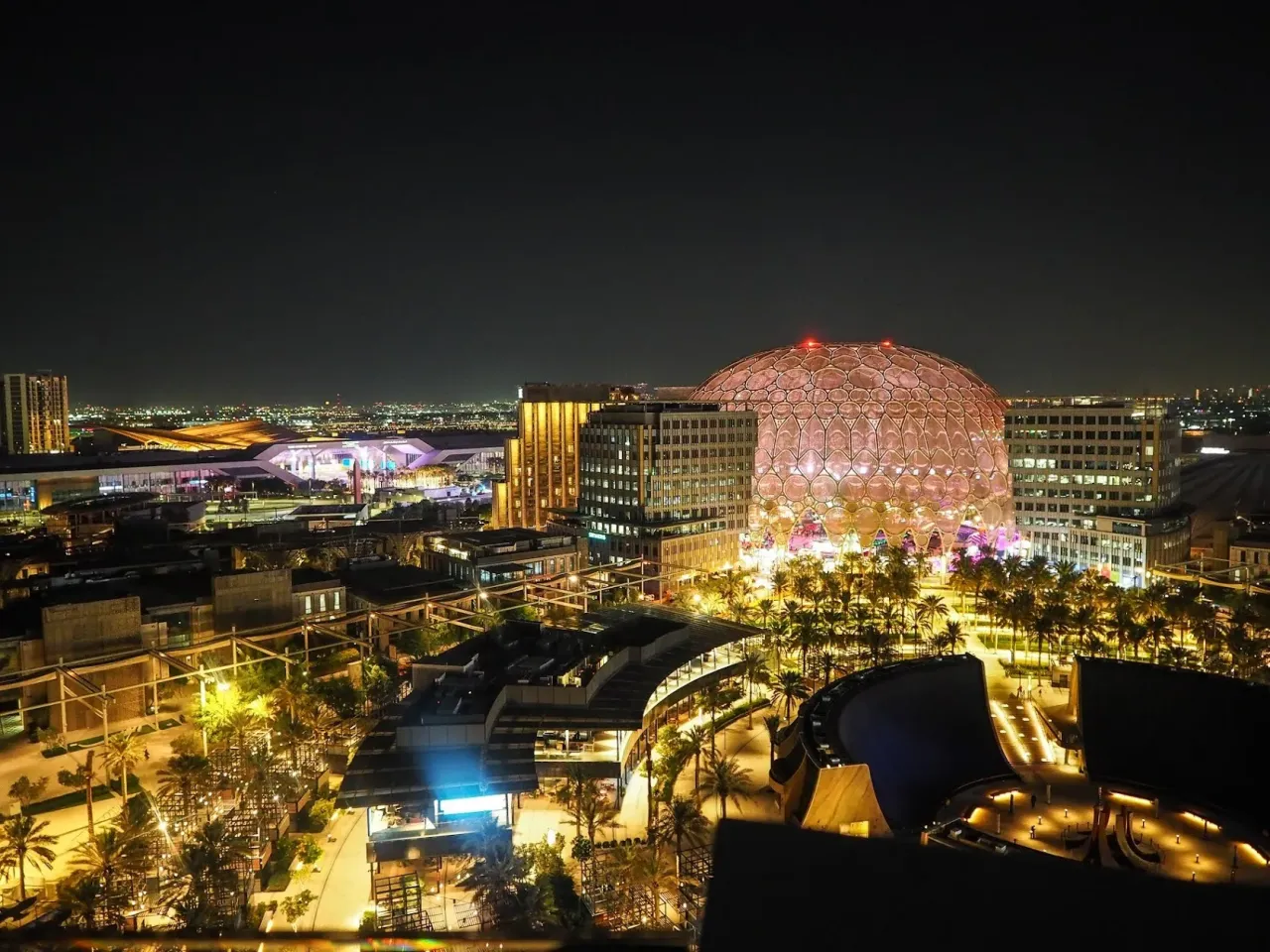 ドバイ万博2020の夜景の一枚。JMPでは、2026年ドバイを紹介する連載を原田篤さんと企画中。ご期待ください(写真提供=原田篤)