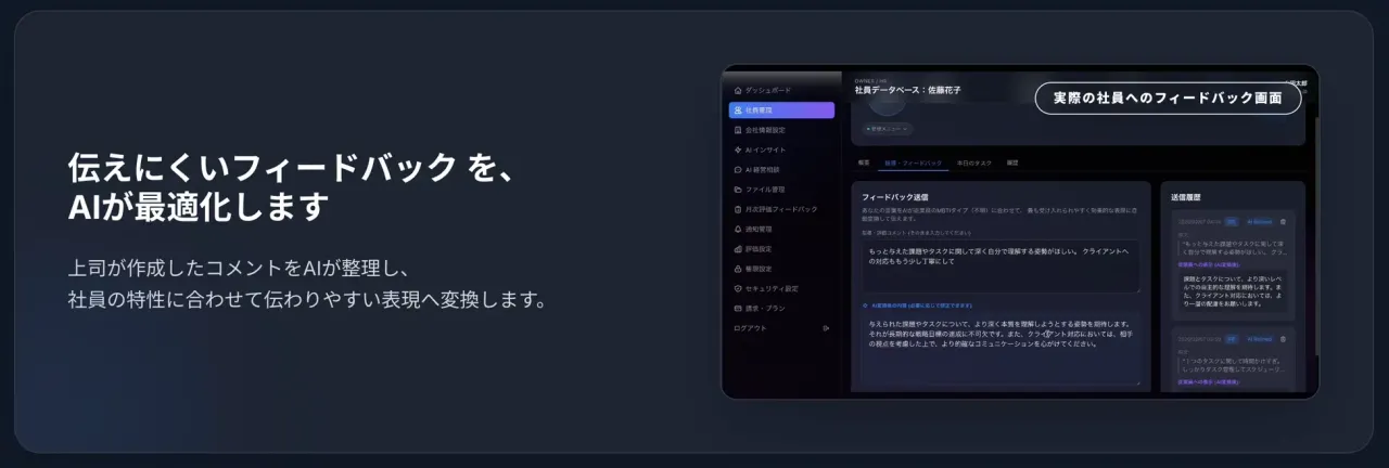 人事評価というデリケートな領域において、AIという「クッション」を挟むことで、直接的な評価の伝達で生じがちな人間関係の摩擦は劇的に減少する。上司の主観や感情的な言葉を、AIが客観的な事実に基づいて整理し、部下が受け入れやすい建設的な言葉へと変換して伝えてくれるからだ。