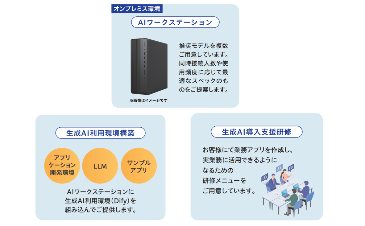 企業が安心してAIを業務に取り入れられるよう、オンプレミス環境での安全な運用と、ローコードによる簡単なアプリ開発を実現。